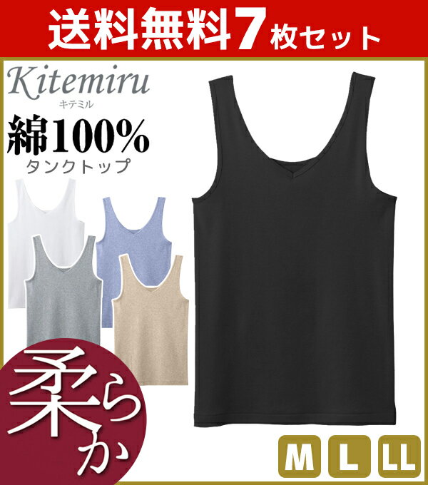 送料無料7枚セット Kitemiru キテミル 柔らか綿100% タンクトップ 天然素材 Mサイズ Lサイズ LLサイズ グンゼ GUNZE | アンダーシャツ 女性 レディースインナー モテ下着 オフィス 仕事用 仕事着 レディス レディース シャツ インナーシャツ インナー 婦人肌着