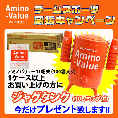 [期間限定]大塚製薬チーム応援キャンペーン!!アミノバリュー1L粉末(100袋入り)1ケース以上お買い上げでジャグタンク(10L/コップ付)プレゼント!!【送料無料】【smtb-MS】【※表示価格は粉末1ケース分の価格】【郵】